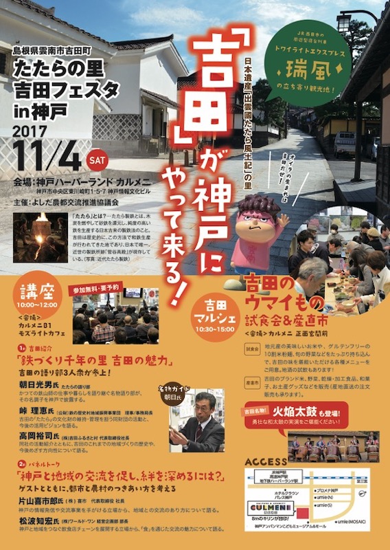 よしだ農都交流推進協議会日本遺産「出雲圀たたら風土記」の里である島根県雲南市吉田町が、神戸・大阪との […] -
